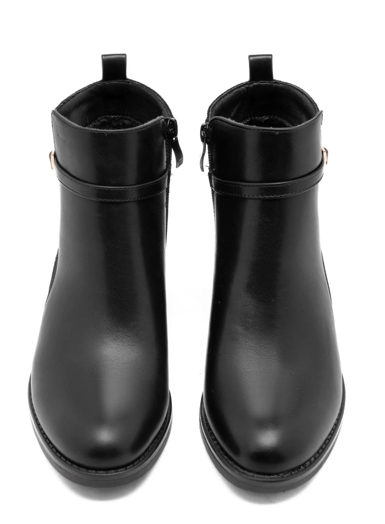 Bottines noires plates boucle